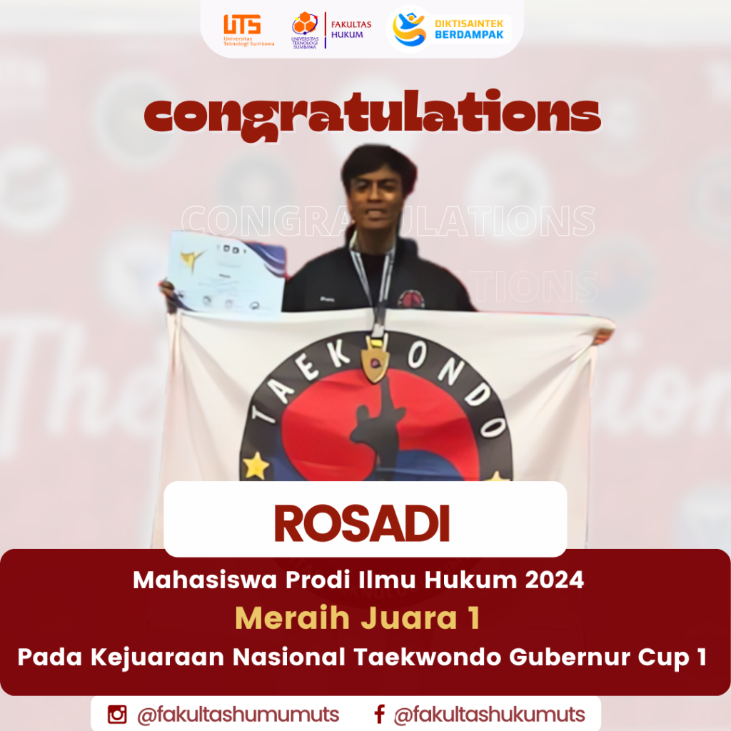 Sumbawa, 16 Agustus 2025 _ Fakultas Hukum Universitas Teknologi Sumbawa (UTS) kembali menorehkan capaian membanggakan melalui prestasi salah satu mahasiswanya. Rosadi, mahasiswa program studi Ilmu Hukum, berhasil meraih Juara I pada kategori Pemula Senior Under 58 Kg Putra dalam ajang Gubernur Cup I yang diselenggarakan di tingkat Provinsi Nusa Tenggara Barat. Pada 06-11 Agustus 2025. […]